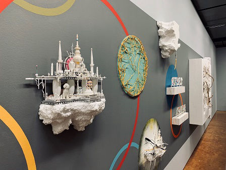 Zum anderen wird eine Brücke zwischen einem Zeitgenossen Vogelers und unserer Gegenwart geschlagen. Habliks kristalline Architekturutopien, die er verstärkt ab 1907 in Itzehoe anfertigte, werden den Fantasielandschaften Nándor Angstenbergers gegenübergestellt. Der in Berlin lebende Künstler lädt ein, ganz genau hinzuschauen und in seine aus Styropor und Plastik gebauten Welten einzutauchen.
