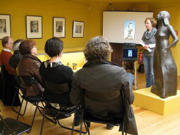 Sonja Toeppe gibt einen Einblick in ihre Tätigkeitsfelder. Anhand von Bildmaterial beschreibt sie, wodurch Schäden an Kunstwerken entstehen, wie sie behoben werden können und wie zukünftig weitere Schäden vermieden werden können.