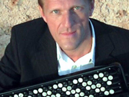 Konzert Solo-Akkordeon auf der Bühne im Altbau der Großen Kunstschau