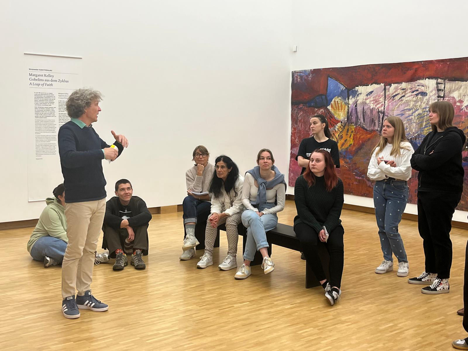 Studierende der Heine Universität Düsseldorf unter der Leitung von Prof. Dr. Jasmin Glander waren zu Gast in den Künstler:innenhäusern und unternahmen eine Exkursion durch Worpswede. Unser kukuwi-Vorstandsmitglied Kathrin Klug führte die Gruppe durch das Dorf, Kurator Stefan Borchert durch die Museen.