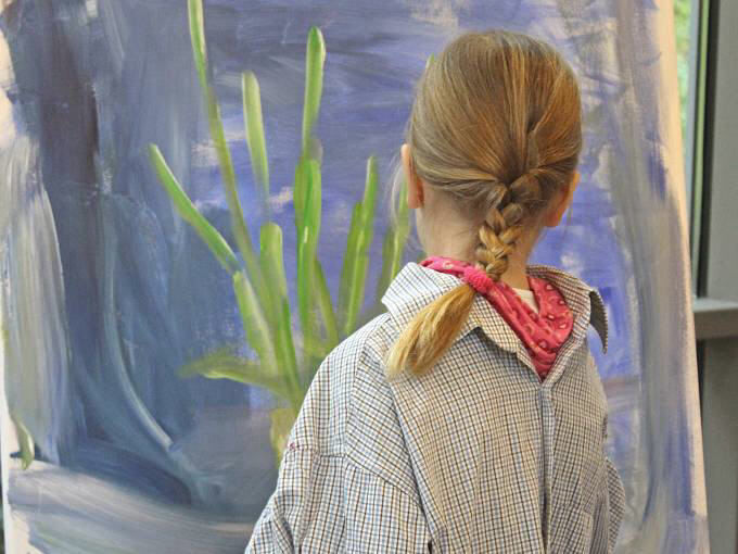 Das Projekt verbindet Museumserlebnis und eigene künstlerische Praxis. Nach dem gemeinsamen Ausstellungsbesuch entwickeln die Schüler:innen materialgestützte Arbeiten, inspiriert von Farben, Formen und Stimmungen der Werke. Begleitet werden die Projekttage von der Worpsweder Künstlerin Ursula Barwitzki sowie den Klassenlehrer:innen.