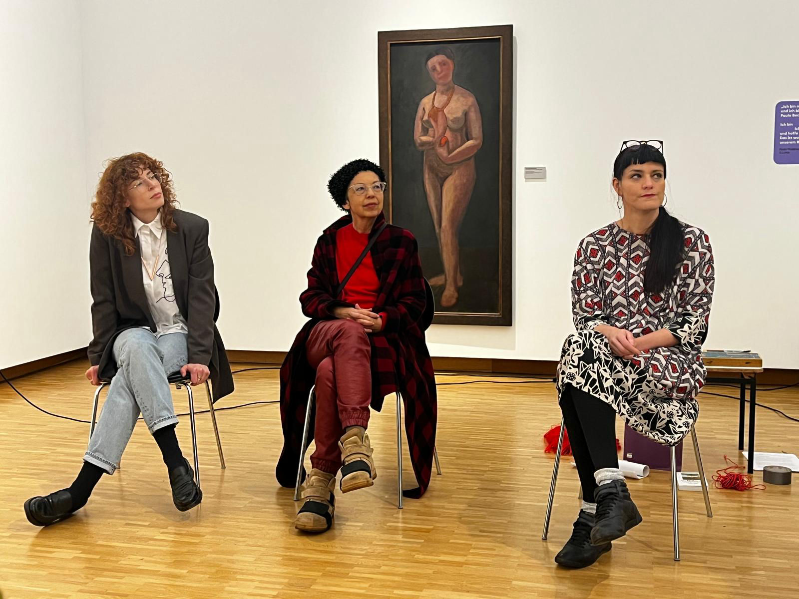 Am 6. Dezember kamen die in London lebenden Künstlerinnen Sophie Seita (Stipendiatin des Pilotprogramms ›Songs of Serpents: Ecopoetic Zones‹, initiiert durch die Akademie der Künste, Berlin, die Worpsweder Künstler:innenhäuser und vier weitere europäische Stipendienstätten) und Anahita Razmi mit Unterstützung durch kukuwi erneut nach Worpswede. Nach der Lesung von Seita und der Performance von Razmi diskutierten die beiden Künstlerinnen mit der Kunsthistorikerin und Kuratorin Sandra Skurvida über die Notwendigkeit von globaler Solidarität unter Künstlerinnen und die Betrachtung von Kunst über Generationen hinweg.